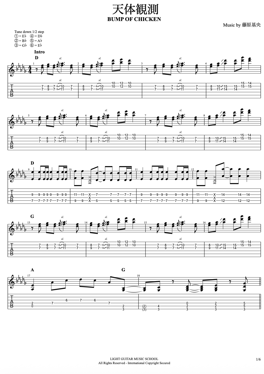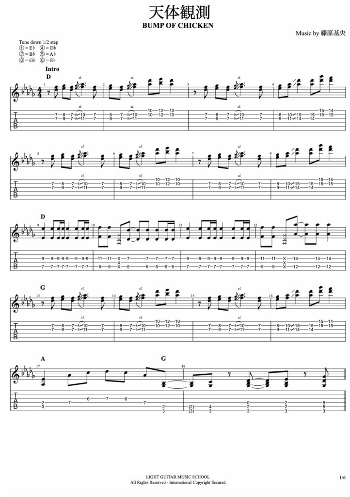 天体観測/BUMP OF CHICKEN(バンプオブチキン)のフルコーラスエレキギターTAB譜はこちらから