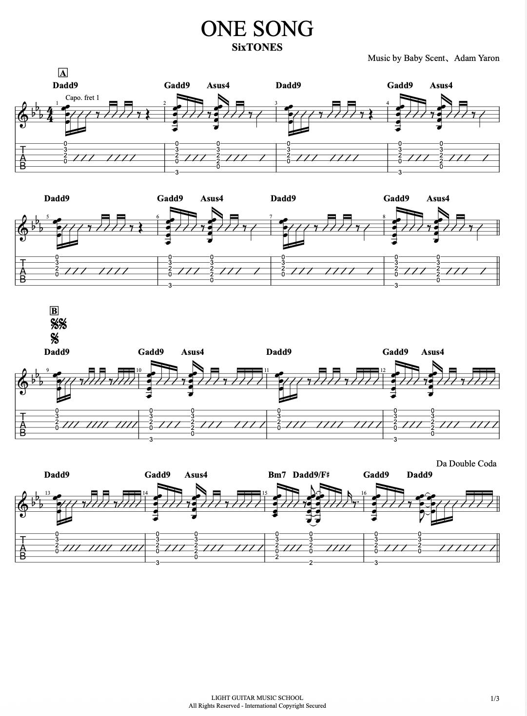 ONE SONG/ SixTONESギターTAB譜・コード・歌詞