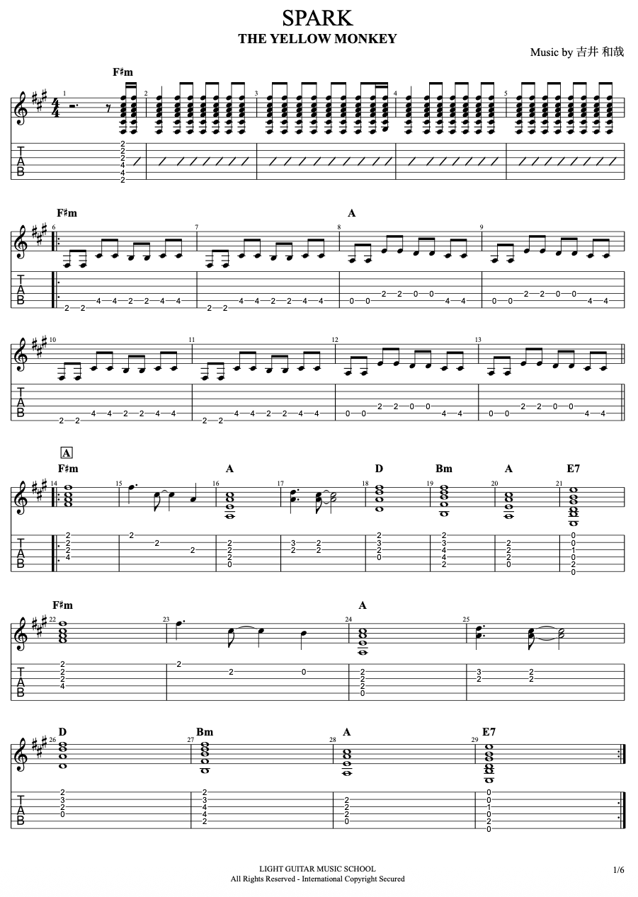SPARK/THE YELLOW MONKEYのフルコーラスアコースティックギターTAB譜はこちらから
